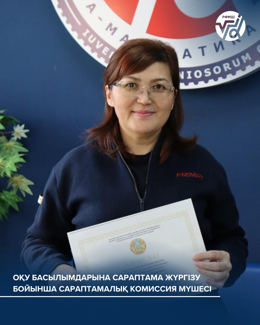 Сапарова Гаухар Аблаевна была награждена Благодарственным письмом за проведение качественной экспертизы учебников и учебно-методических комплексов для организаций среднего образования.